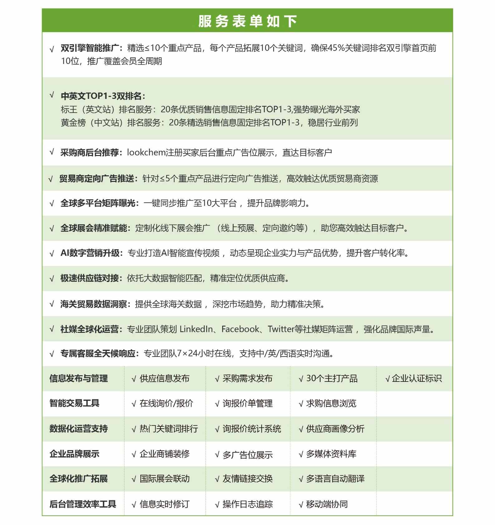 黄金榜(中文站)排名服务:20条精选销售信息固定排名TOP1-3,稳居行业前列;